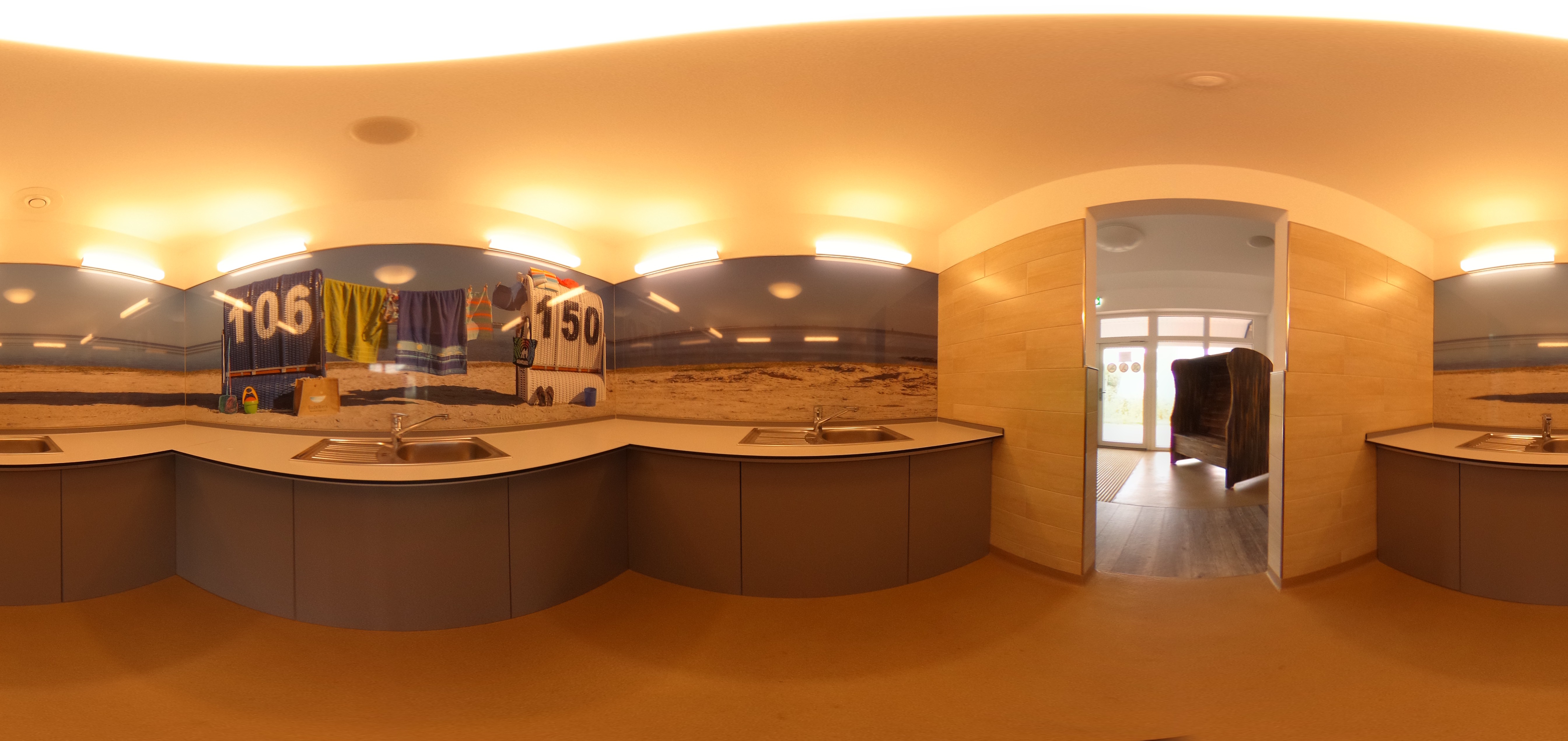 Entdecken Sie das Sanitärgebäude „Strandhus“ in 360° Rund-um-Ansichten.